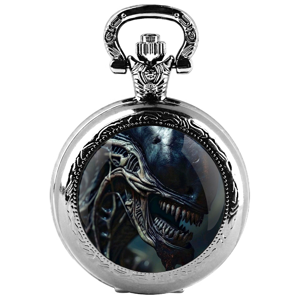 Alien Xenomorph Design Unique Gifts Vintage Arabic Numerals Quartz Pocket Watch Necklace Pendant Clock Chain Men Gifts for Boys