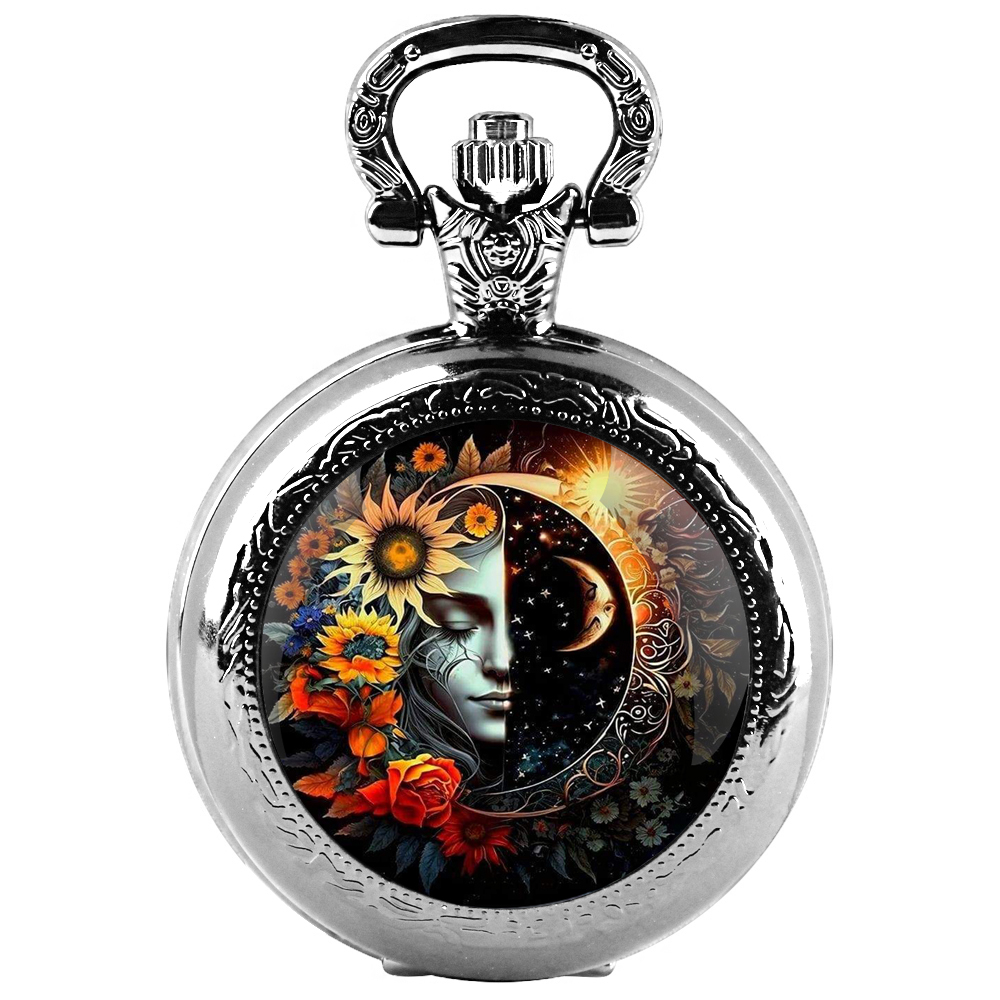 Artistic photo Design Glass Dome Quartz Pocket Watch With Durable Chain Arabic Numeral Dial For Men And Women Creative Gifts
