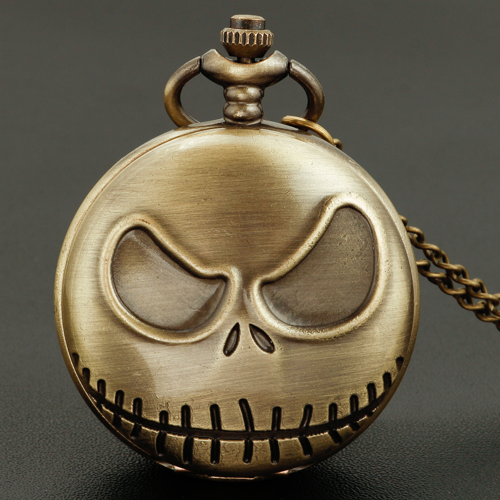Bronze Skull Steampunk Quartz Pocket Watch Retro Antique Necklace Pendant FOB Sweater Chain Souvenir Gifts