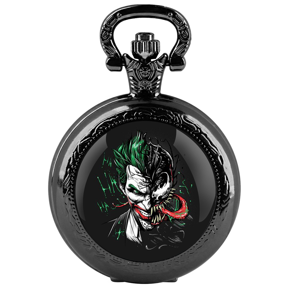 Delicate Gifts Quartz Pocket Watch Joker Design Glass Dome Necklace Pendant for Mens Womens