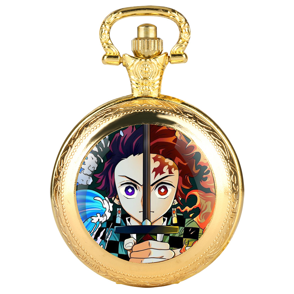 Demon Slayer Design Glass Dome Quartz Pocket Watch With Durable Chain Arabic Numeral Dial For Men And Women Creative Gifts