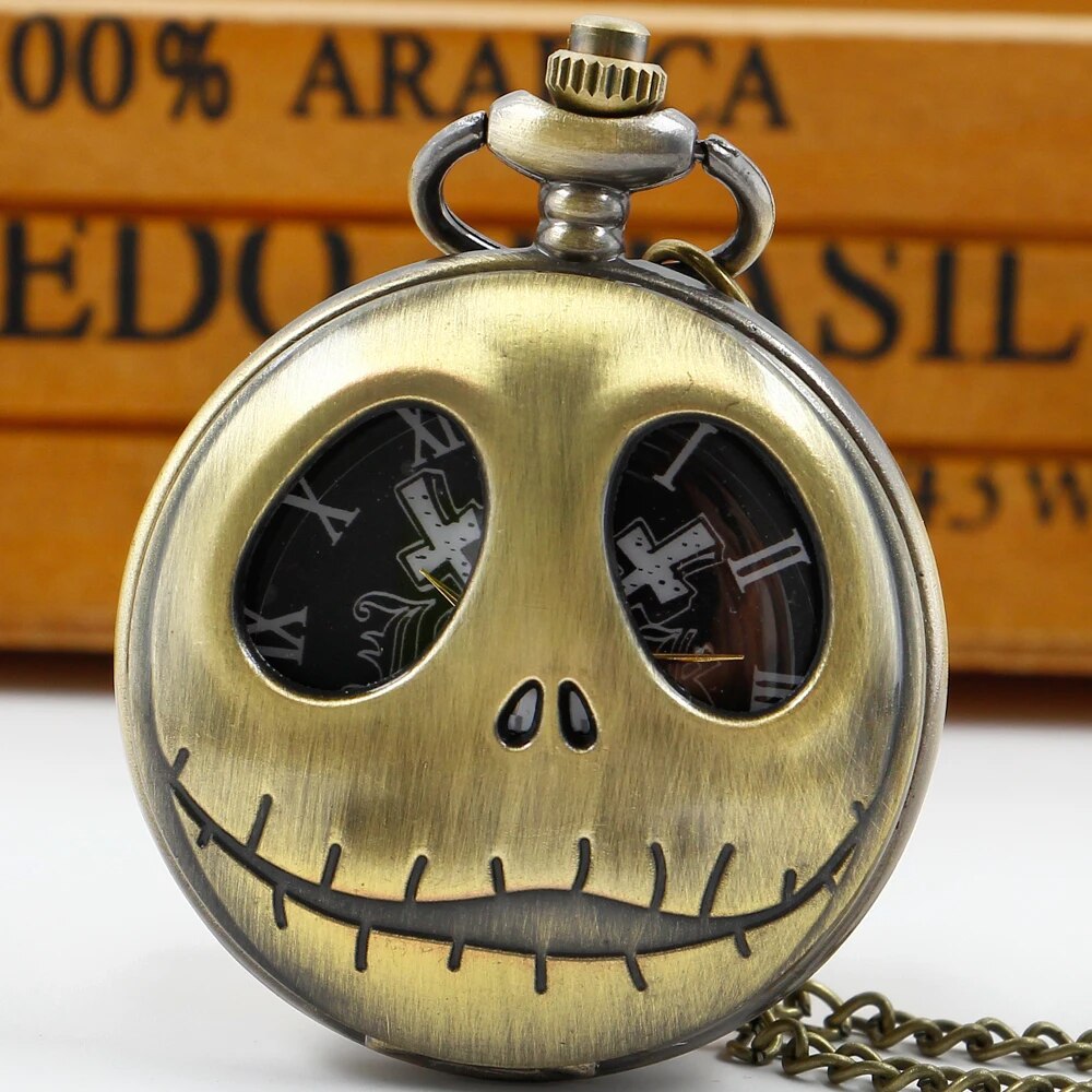 Hot Selling Quartz Pocket Watch Personalized Skeleton Hollow Retro Necklace Men's Unisex Halloween Best Gift CF1369