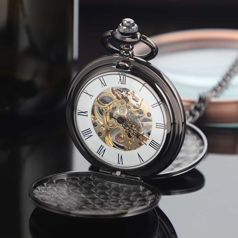 Luxury Black Bronze Smooth Men's Mechanical Pocket Watch 2 Sided Open Case Clock Pendant Watch Reloj Clock Gift for Men Male