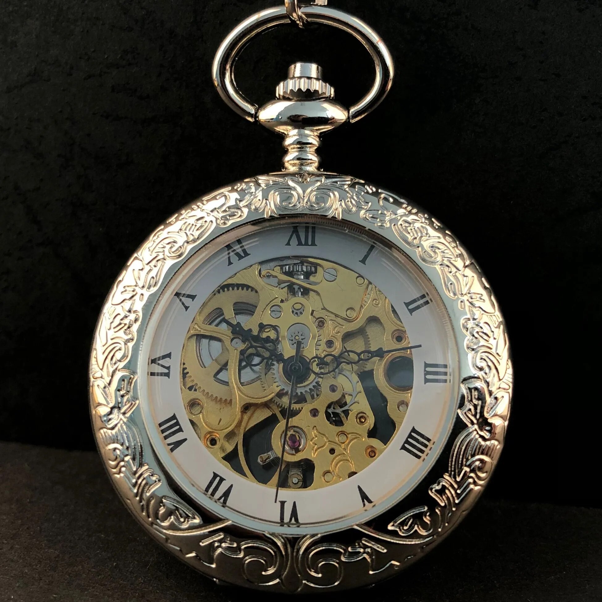 5pcs/set Mechanical Pocket Watch Silver Fashion Vintage Ladies Men's Pendant Necklace Pocket Watch Antique Retro Hand Wind Fob Watches