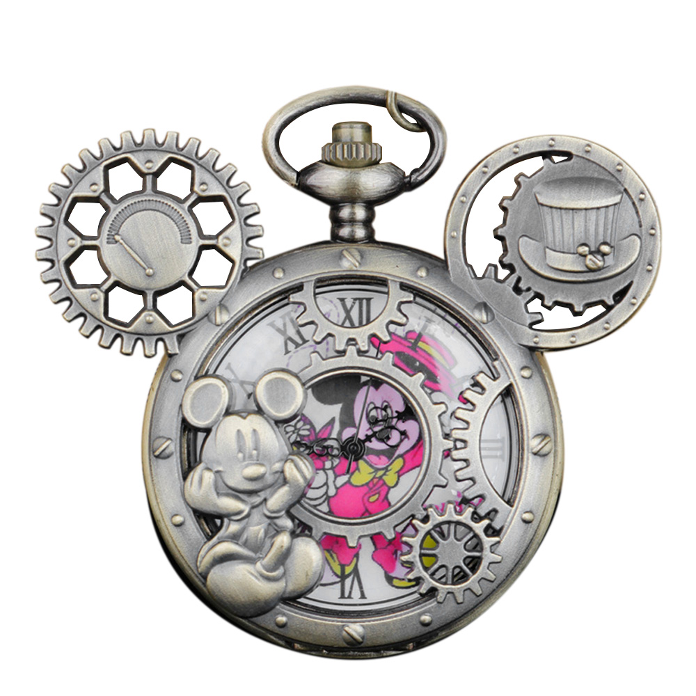 Popular Animation Theme Pocket Watch Pendant with Necklace Chain Cartoon Boys and Girls Birthday Souvenir Gift Clock