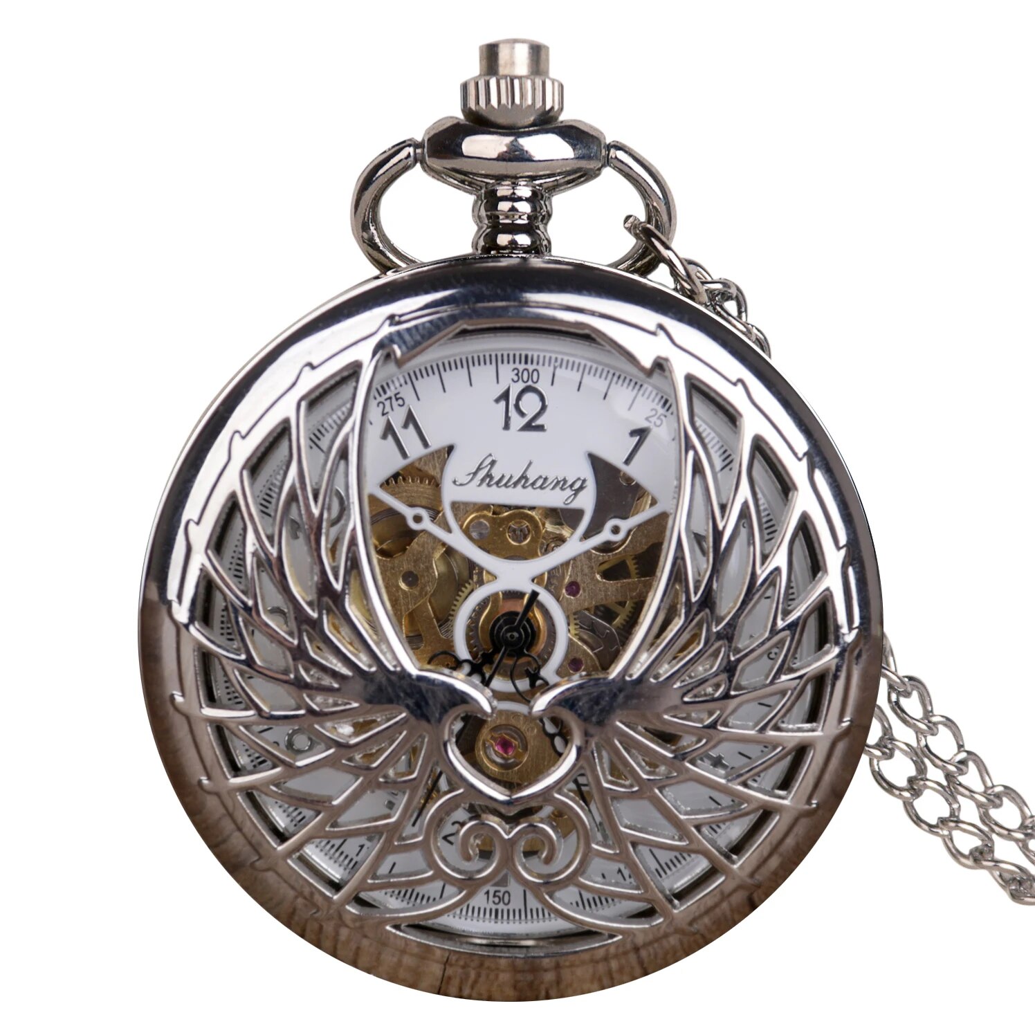 5pcs/set Top Brand Luxury Silver Pocket Watches Mechanical For Men Women Unisex Vintage Hollow Skeleton Necklace Chain Clock Fob Watches