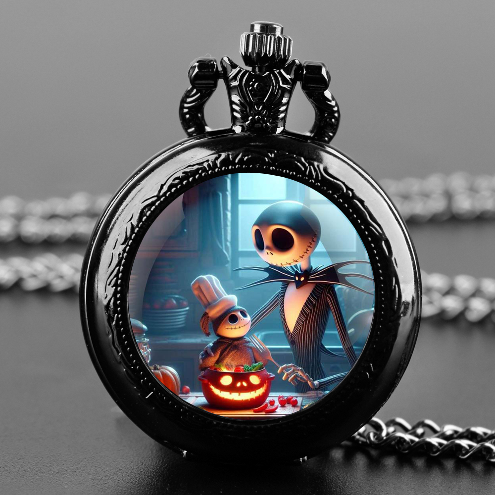 Christmas Gifts Jack Skellington Quarzt Pocket Watch with Chain Necklace Vintage Quartz Pendant Watches Clock Chain Mens Women