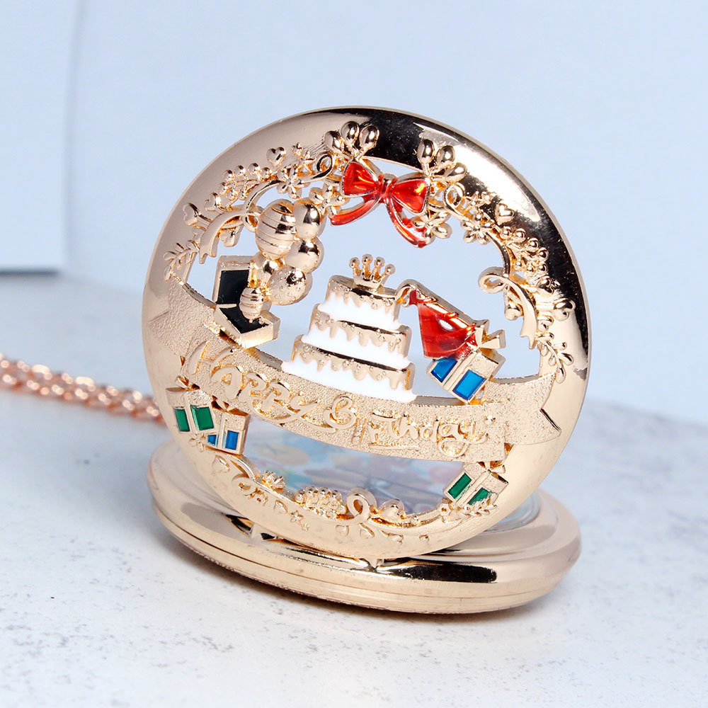 Unique Happy Birthday Cake Vintage Bronze Steampunk Pocket Watch for Antique Gift Accessories